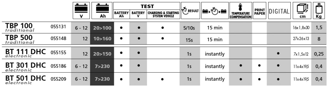 | BT 111 DHC - Multistandardni tester baterij za testiranje 12 V baterij, 20-150 Ah. |