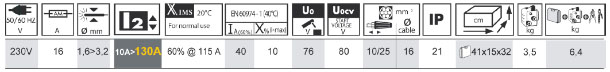 Lastnosti: Varilna naprava na enofazni tok (220 V) za varjenje z MMA elektrodami. Neposredni varilni tok (DC). Inverter tehnologija. Možnost varjenja z skoraj vsemi vrstami elektrod. Elektrode: Ø 1.6 ► 3.2 mm